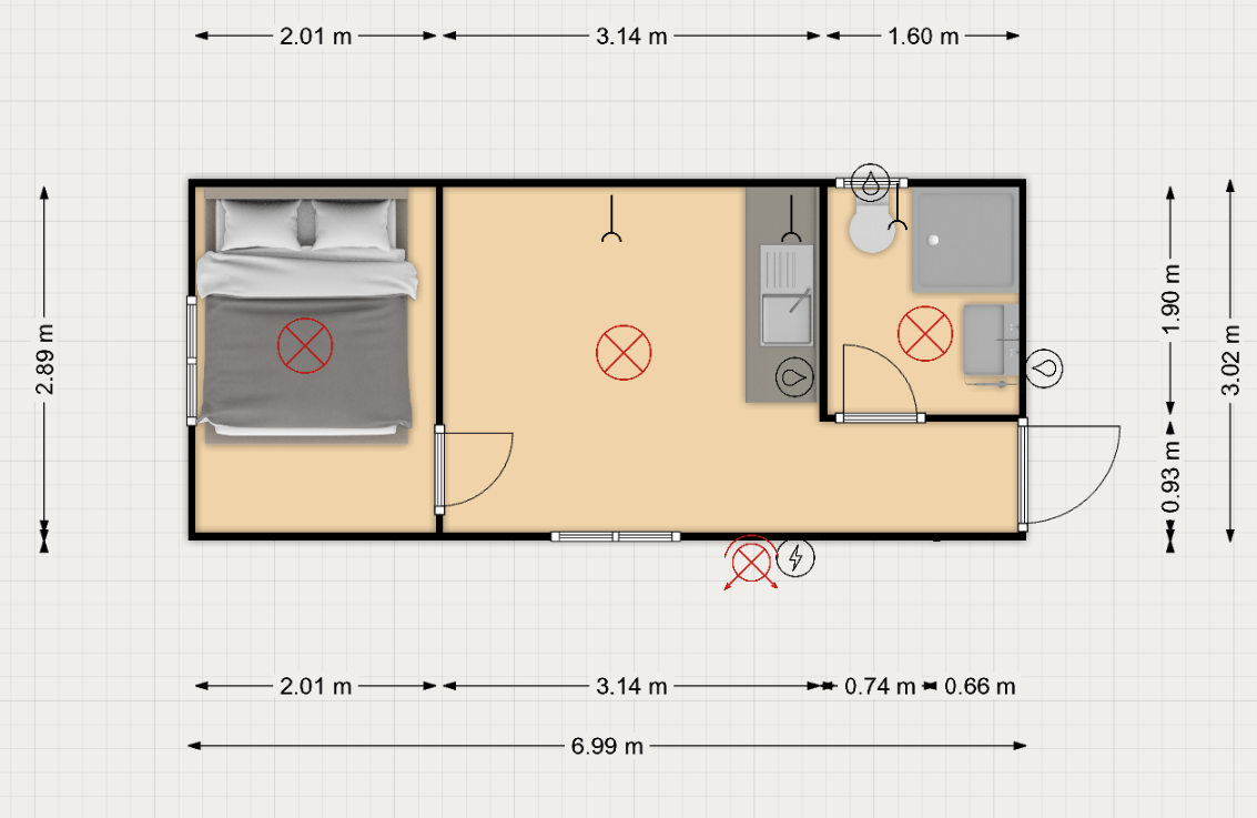 Méret 7 m x 3 m, belmagasság: 2,35 m, 21 nm alapterület