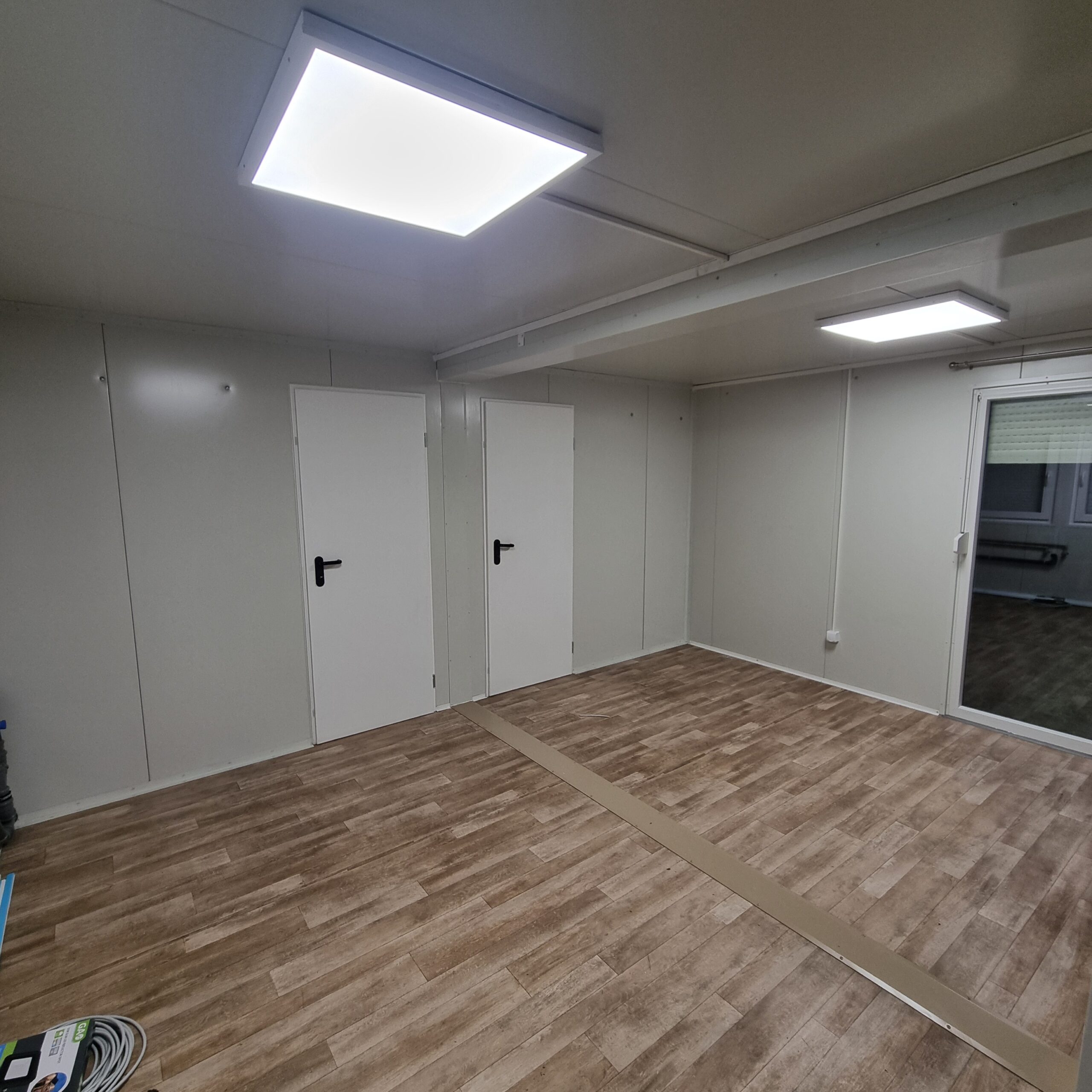 Teljes elektromos kiépítés (Külső 400V csatlakozás 2db LED panel, 2 db kapcsolóval, valamint 3 db 230V konnektorral)