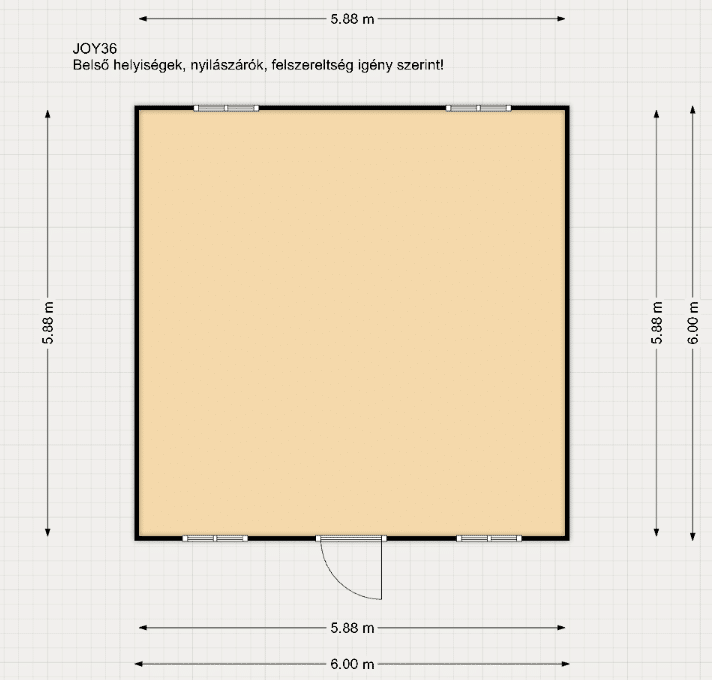Méret 6 m x 4,8 m, belmagasság: 2,35 m, 30 nm alapterület