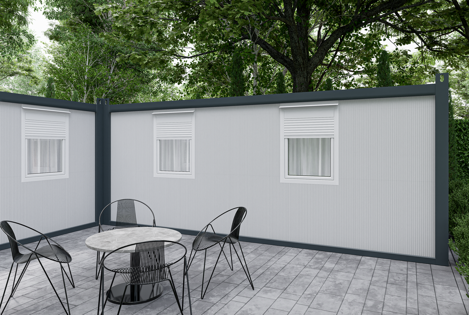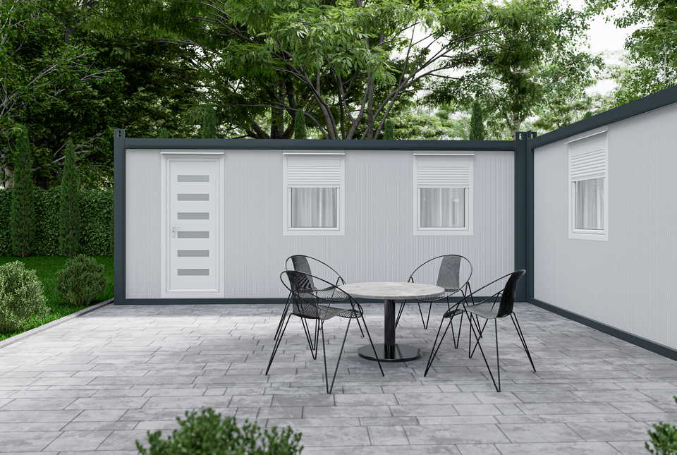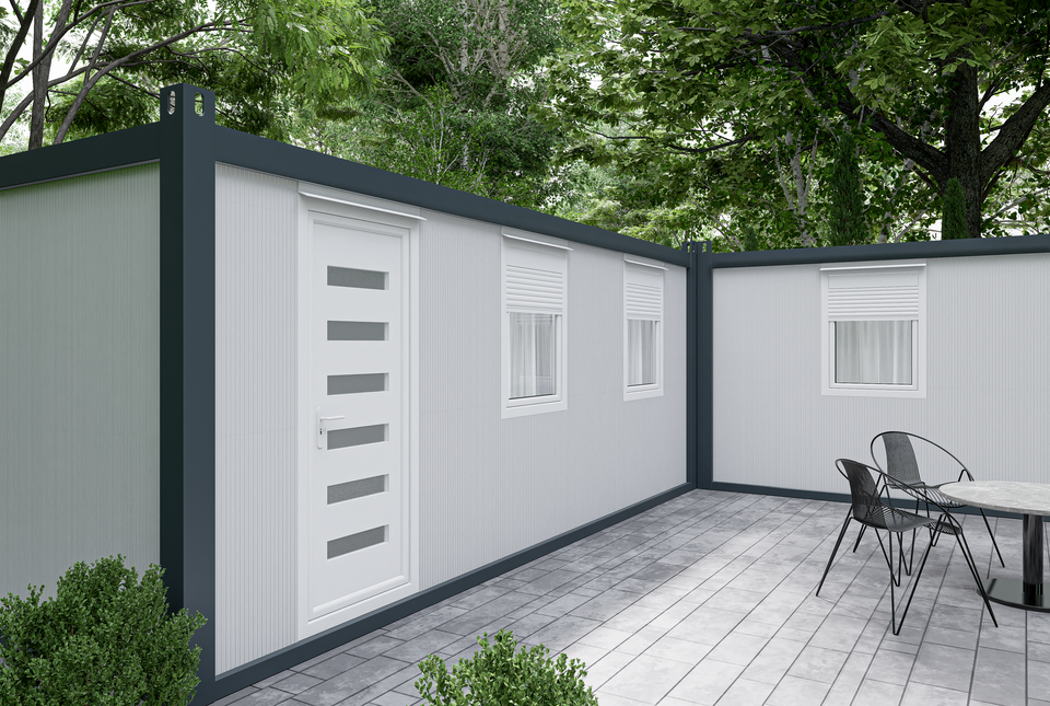 Prémium, négyévszakos konténerház, PIR szigeteléssel, minőségi nyílászárókkal, sorolható és több szint is kialakítható. 2 db JOY18-as és 1 db JOY9-es konténer összeépítéséből jön létre.