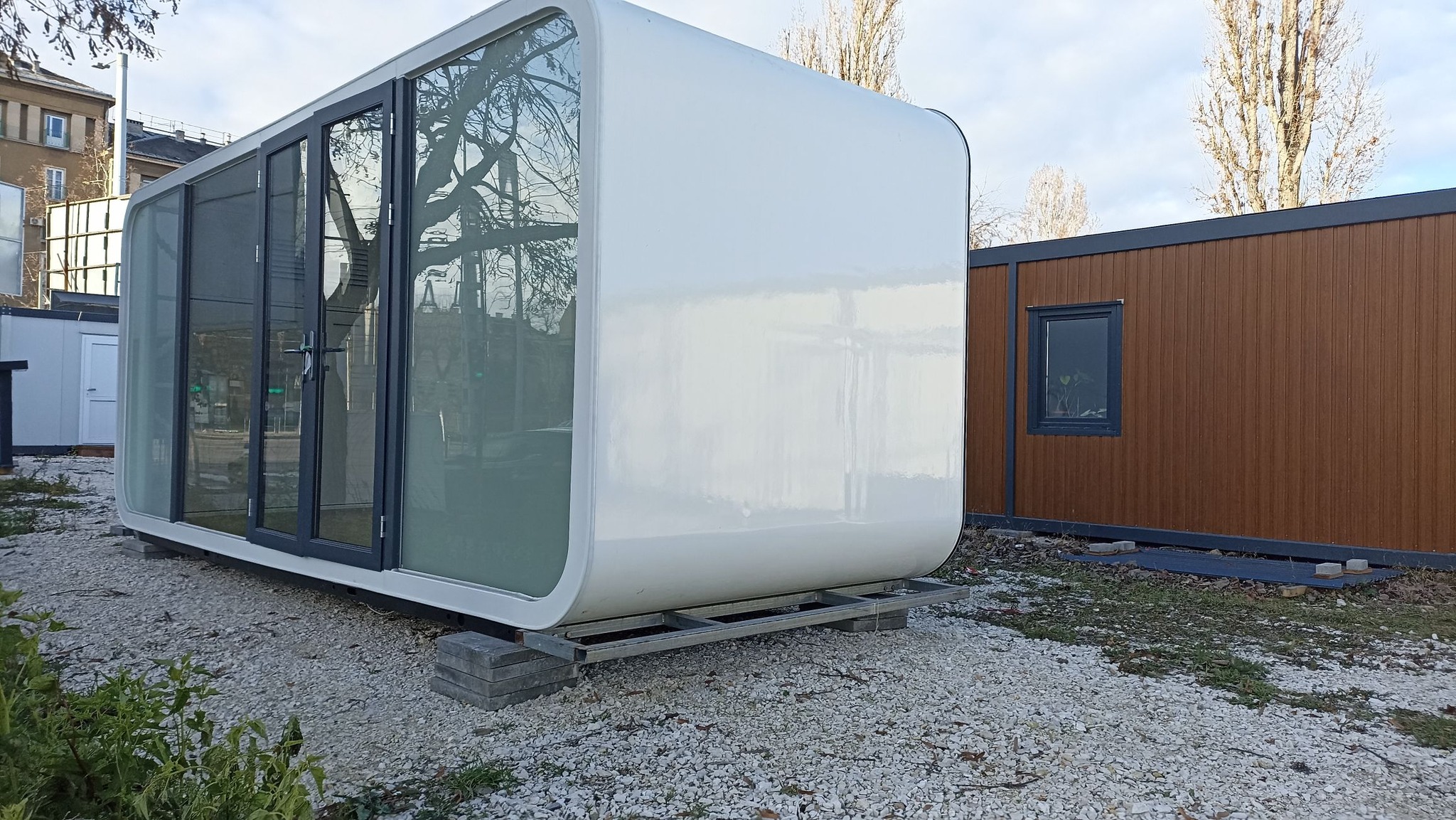 Formatervezett, összkomfortos mini kapszulaház, szigetelt falakkal, panoráma nyílászárókkal, teljes berendezéssel, kulcsrakészen. Azonnali beüzemelésre készen