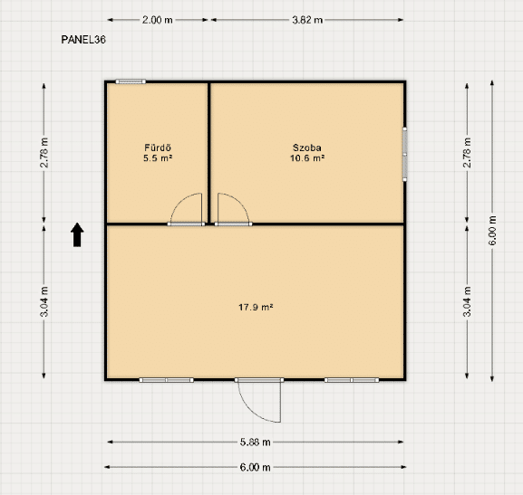 Méret: 6x6-ös, 36 nm-es alapterület, belmagasság: 300 - 270 cm