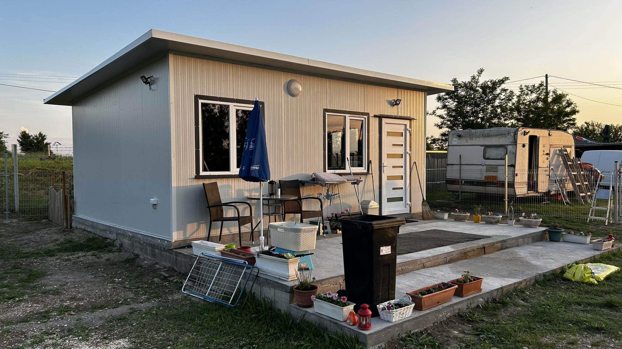 Igény esetén vízszereléssel, komplett fürdőszobával, wc-vel. konyhakiállással!
