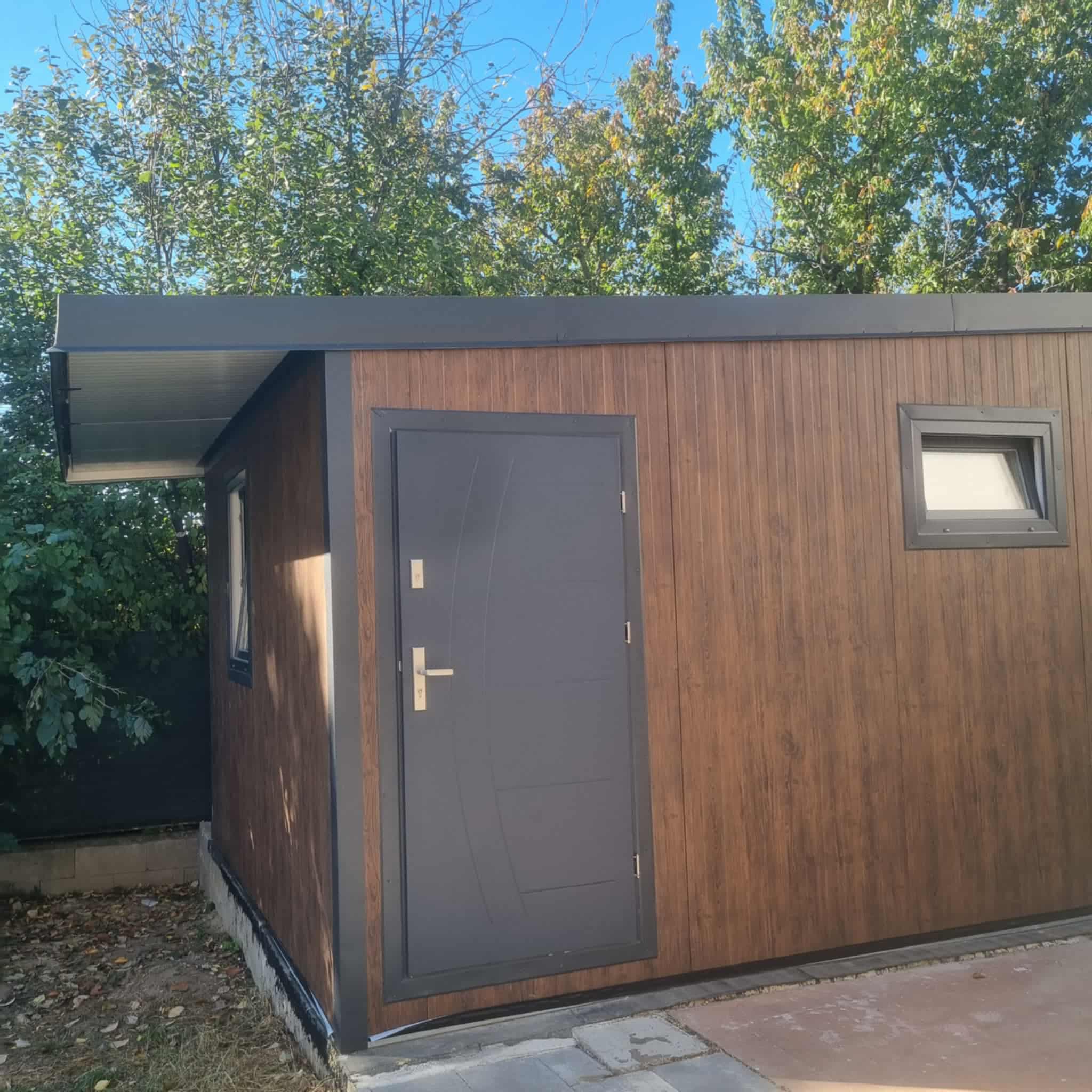 Az ECO konténerházaink helyszínen épített változatai, hagyományos alapra készülnek, alacsony hajlásszögű féltetővel, 1 ablakkal és bejárati ajtóval, fehér szendvicspanel falazattal, opcionálisan belső válaszfalakkal villany és vízszereléssel. Kitűnő megoldás olyan helyekre, ahol a konténerház egyben nem szállítható le, vagy ahol kialakítható a hagyományos alap hozzá.