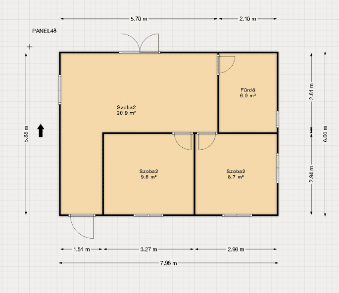 3 szobával, belső válaszfallal, beltéri ajtókkal