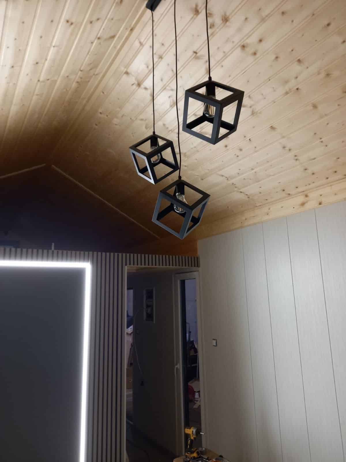 Kiépített elektromos hálózat biztosítéktáblával, mennyezeti világítás LED spotlámpák