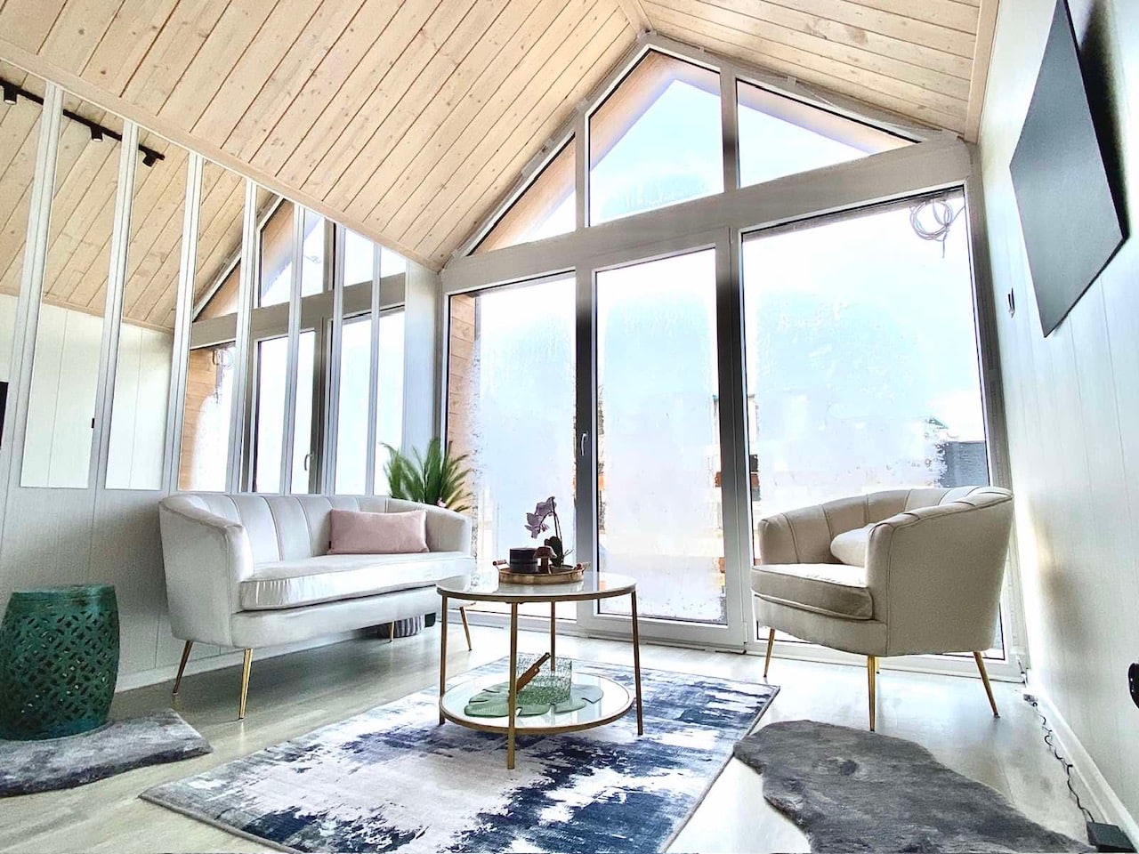 36 nm + 20 nm fekvőgalériás négyévszakos skandináv tipusú készház, extra szigeteléssel, egyben szállíthatóan. Fürdőszobával, hálószobával, nagy üvegfelületekkel, emelt belmagassággal, azonnal raktárról szállíthatóan!